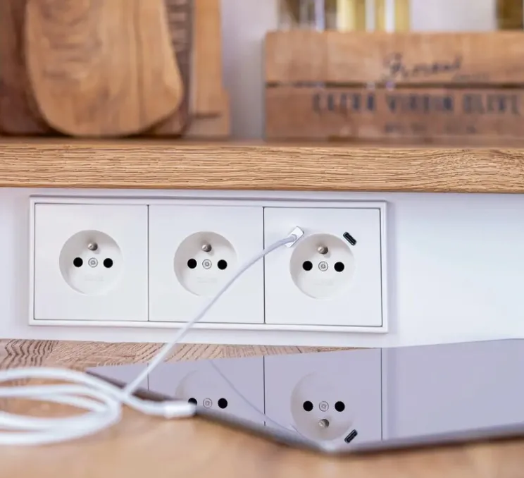 Avec L22,3cm de longueur et H8,1cm de hauteur, la Prise Triple horizontale Blanc mat de la collection LS 990 de Jung est équipée de 3 prises 2P+T et d’une prise USB A/C, idéale pour recharger vos appareils électroniques en toute simplicité. Fabriquée en polycarbonate de haute qualité, ce produit est compatible avec un boîtier d’encastrement standard pour une installation facile et rapide.