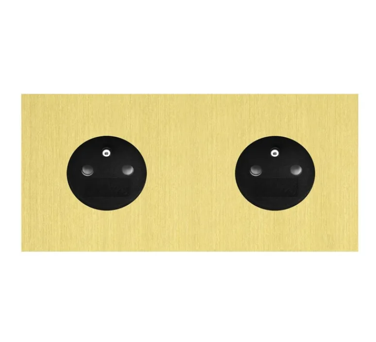 Avec sa finition en aluminium or clair, cette prise 2P+T au format horizontal offre un design moderne qui se démarque par sa sobriété et son raffinement.