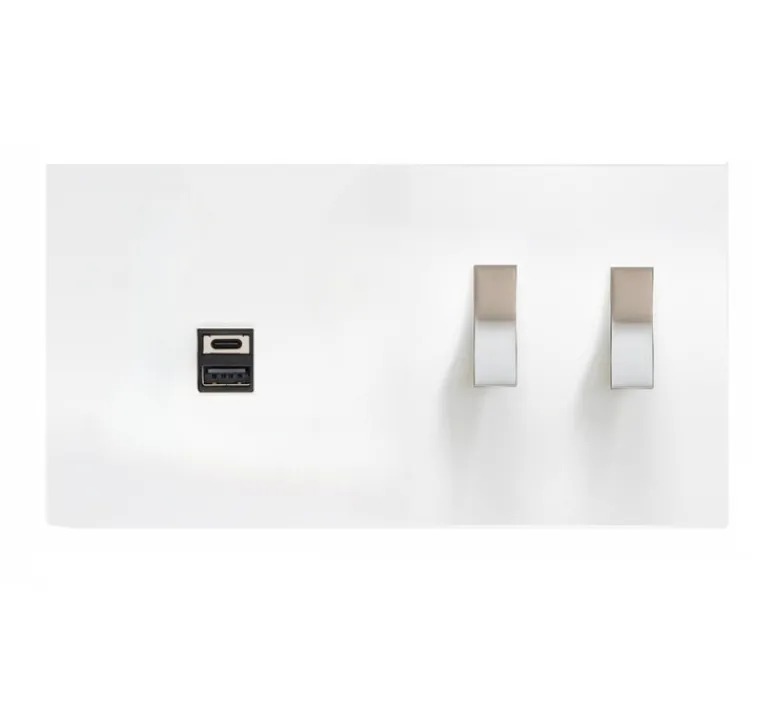 Offrant une double fonction va-et-vient pour contrôler efficacement l’éclairage, cet interrupteur double est également équipé de deux prises USB pour répondre à vos besoins de recharge. Fabriqué en aluminium de haute qualité, il assure une durabilité remarquable et une performance fiable. Conception : Espagne.