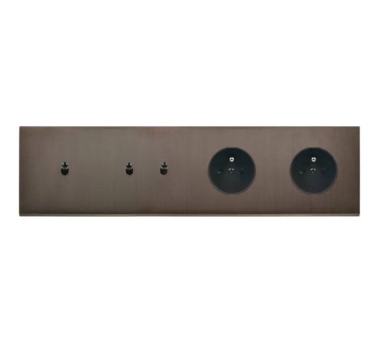 La marque Modelec présente sa collection Confidence avec l’Interrupteur et Prise Quadruple horizontal en finition canon de fusil.