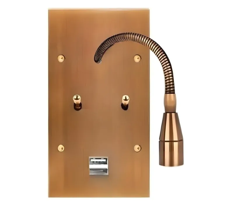 Cet ensemble polyvalent comprend une liseuse, deux interrupteurs va-et-vient et une prise USB A/C. Mesurant L4cm x H12,5cm, il se monte verticalement et s’intègre parfaitement dans les espaces restreints. La prise USB en laiton permet de charger vos appareils électroniques rapidement et efficacement. Fabrication française..