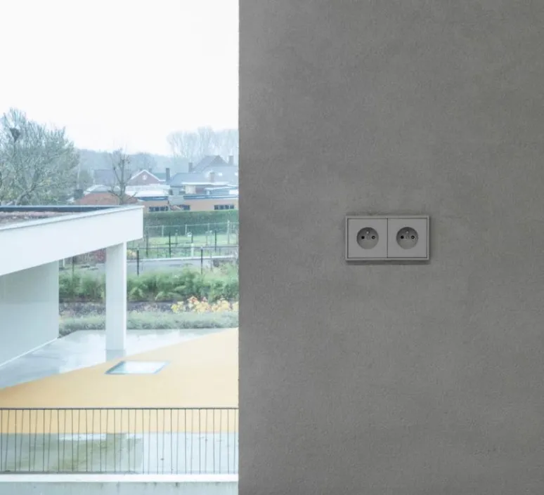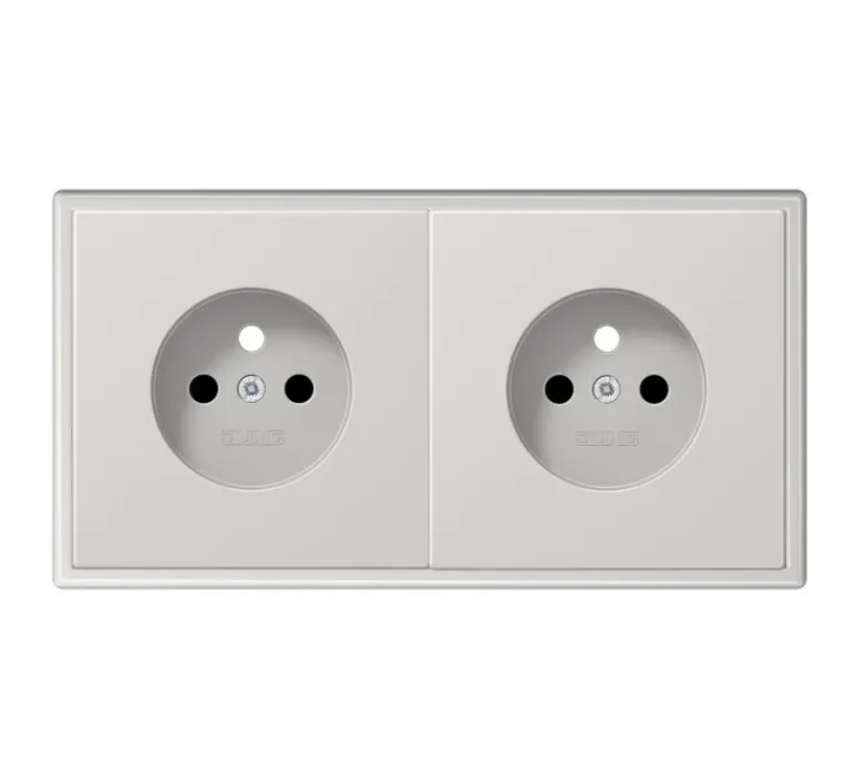 La marque Jung vous présente sa collection LS 990 avec cette prise double horizontale en gris clair.
