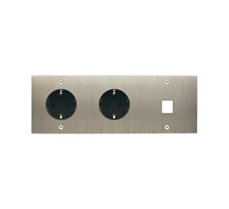 Fabriquée avec précision en acier, cette façade est non seulement robuste mais aussi durable dans le temps. Mesurant 22,2 cm de longueur et 8 cm de hauteur, elle est prévue pour deux prises PC et une prise RJ45. Son design triple horizontal permet une organisation efficace des prises, assurant une installation simple et sécurisée. Fabrication française..