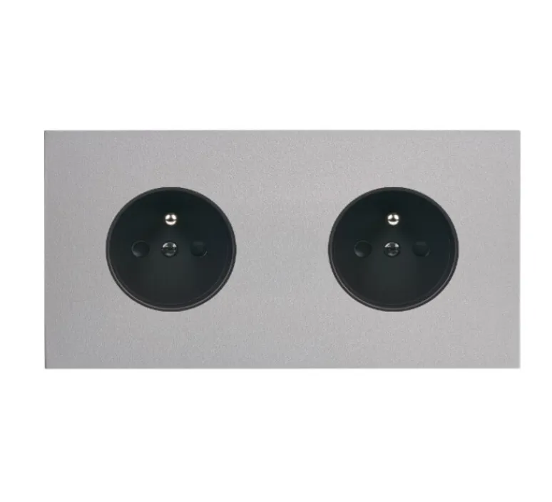 La prise double horizontale en aluminium mat de dimensions L15,1cm x H8cm allie design contemporain et praticité.