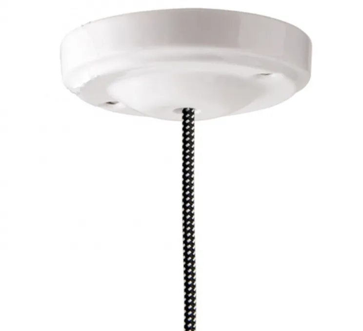 Le produit est inspiré du style rétro du début du 20e siècle. La rosace en porcelaine est vendue avec un S de fixation de câble électrique à placer à l’intérieur de la rosace. La visserie n’est pas fournie pour ce produit.