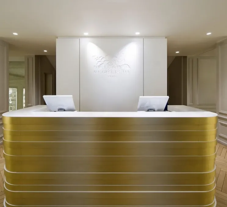 Le spot est en aluminium et est disponible en quatre coloris : pure white (blanc) et jet black (noir), or brossé et bronze. Le montage se fait par ressorts à lames intégrés.