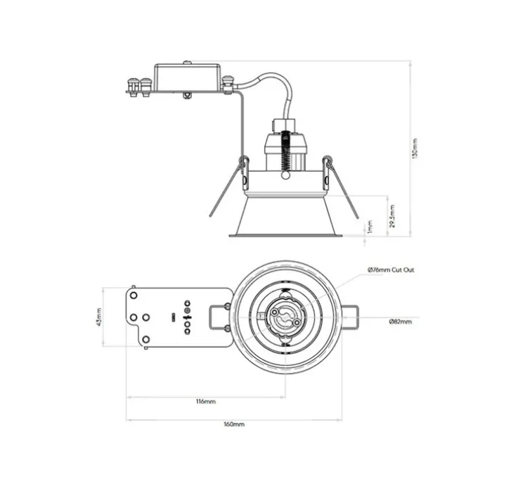 La source lumineuse n’est pas incluse mais vous préconisons une ampoule LED GU10 d’une puissance maximale de 6W. L’ampoule est donc facilement remplaçable. Le spot possède un variateur et est compatible avec tous les accessoires Smart Lighting Casambi. Montage au plafond. Le diamètre de découpe est de 7,6 cm et la profondeur d’encastrement 15 cm.