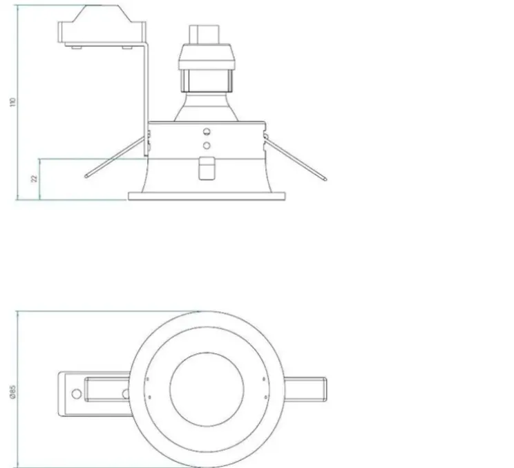 Il mesure de 8,5cm de diamètre et sa hauteur est de 11cm et permet de l’encastrer dans tout type de faux plafond d’une hauteur minimum de 15 cm.