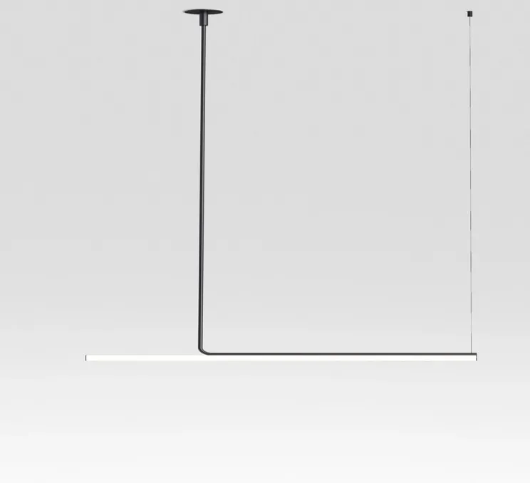 Son design découle d’une structure tubulaire aux lignes douces qui se fixe au plafond, permettant à la lumière de descendre et d’éclairer doucement tout type de projet. C’est cette lumière diffuse qui remplit l’espace en y ajoutant de la beauté. Son design linéaire et unique, un segment de lumière presque plat, a été rendu modulaire et asymétrique pour créer un système d’éclairage doux et surprenant.