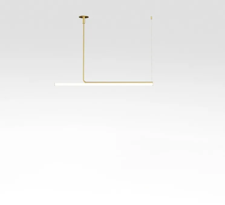 Cette suspension à la ligne étirée s’accorde idéalement avec des espaces généreux comme une salle à manger, un long comptoir ou une cuisine ouverte. Elle met en valeur les surfaces horizontales proches, tout en créant un effet de lumière fluide lorsqu’elle est suspendue à la bonne hauteur.