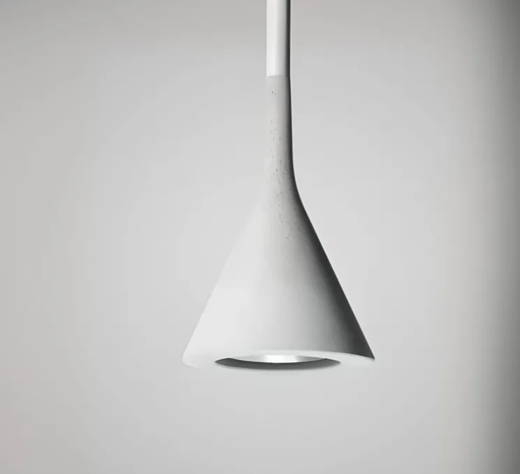 Cette suspension en béton Aplomb de finition blanche est signée du duo de designer Lucidi et Pevere est éditée par la maison italienne Foscarini en 2014.