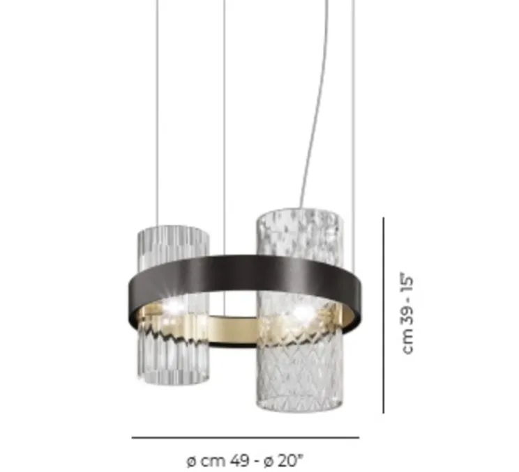 La suspension Armonia SP 50 se distingue par son cadre ovale élégant qui supporte deux cylindres colorés et texturés en cristal pur. L’utilisation du cristal ajoute une touche de luxe et de sophistication à cette pièce, créant un effet époustouflant.