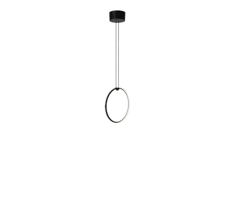 Chaque élément est composé d’un corps en aluminium extrudé, courbé, travaillé en CN et recouvert de peinture poudre noir et d’un diffuseur en silicone optique platinique. Chaque élément peut être connecté à l’alimentation par un système de connexion électrique et mécanique. Deux rosaces sont disponibles : une pouvant accueillir une configuration de puissance inférieure à 70 watts et une pouvant accueillir une configuration de puissance inférieur à 190 watts. L’électronique intégré dans la rosace permet d’utiliser des systèmes de variation : push, 1-10V, potentiomètre, DALI ; et il est également possible lors de l’installation de régler le flux lumineux avec le système push inclus. Le câble est d’une longueur de 2,5 mètres.