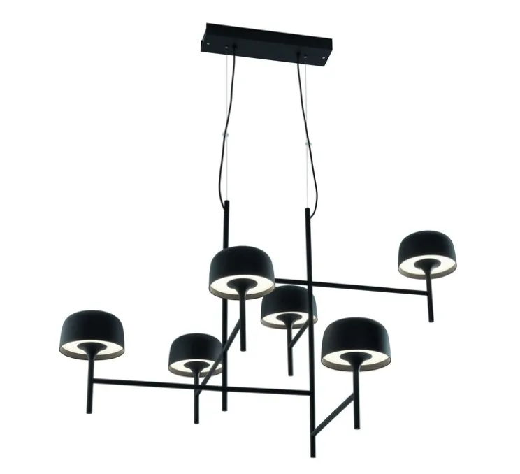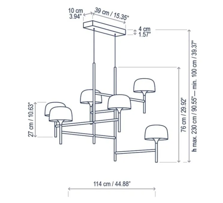 La suspension mesure 114 cm de longueur pour 76 cm de hauteur. Les 6 sources lumineuses sont fournies.