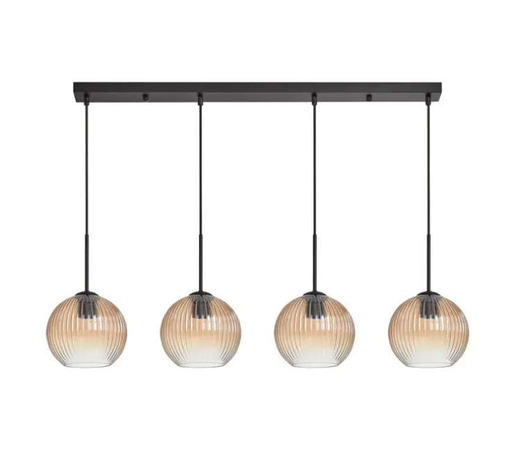 Composée de verre ambre strié et métal, cette pièce raffinée séduit par son équilibre entre modernité et élégance, idéale pour sublimer un intérieur avec un éclairage décoratif.