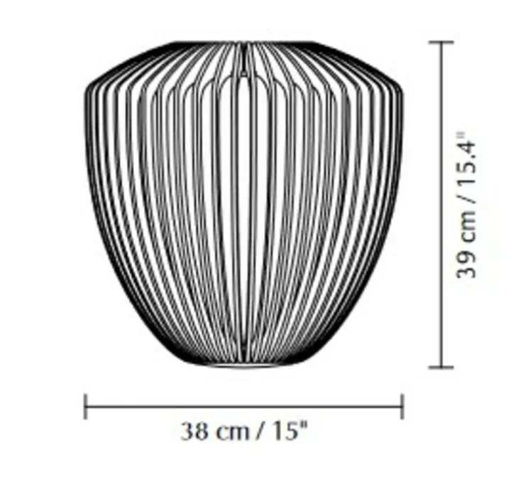 Le luminaire mesure 38cm de diamètre et 39cm de hauteur, pour 1.3kg.