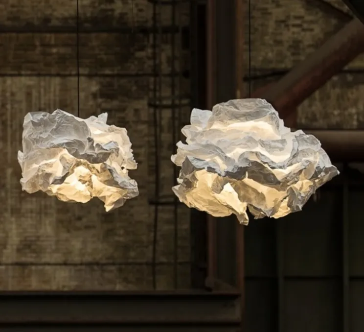 Cette suspension peut être froissée à l’infini et garder sa nouvelle forme grâce au matériau à mémoire de forme qui la compose.