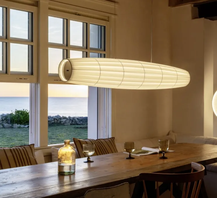 Pour une intégration réussie dans votre décoration intérieure, placez cette suspension au-dessus d’une grande table à manger. Son design épuré et aérien se marie parfaitement avec un environnement contemporain, aussi bien dans un salon qu’une chambre. N’hésitez pas à l’associer avec des matériaux naturels, comme le bois ou la pierre, pour un contraste chaleureux qui mettra en valeur la pureté de la suspension.