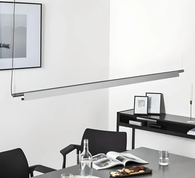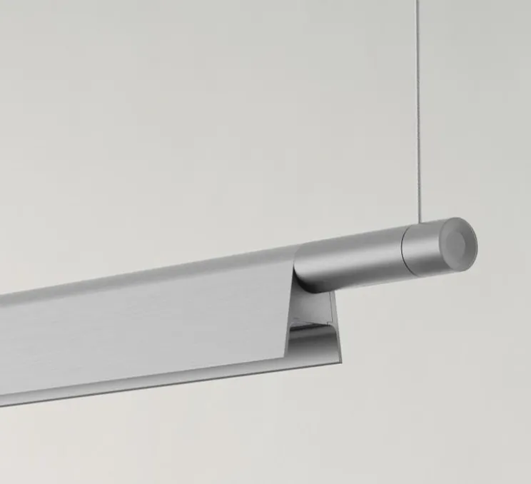 Cette suspension de finition aluminium conjugue modernité, élégance et finesse. Fabriquée en aluminium, elle est particulièrement légère. Elle permet d’habiller une pièce avec simplicité tout en diffusant une lumière de 3000 kelvins (blanc chaud) dans l’espace. Cette dernière peut être orientée directement vers le bas ou indirectement vers le haut grâce à son réflecteur intégré. Vous pouvez choisir sa position au moment de l’installation et ainsi créer votre propre ambiance.