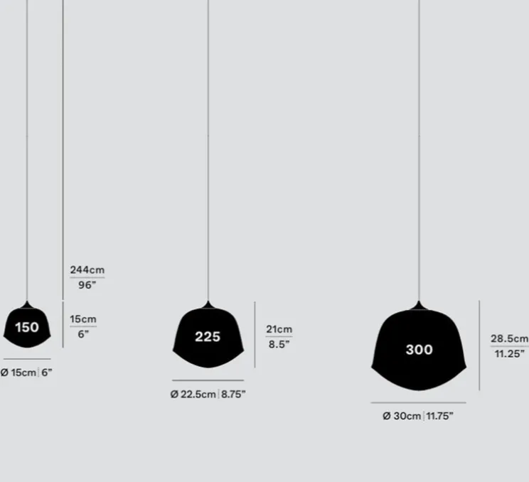 Dotée d’un module LED intégré (2700K, IRC >90), la suspension n’est pas dimmable. Le câble noir d’une longueur de 2,24 mètres permet une installation adaptable selon les besoins. Montage en saillie. Pour une mise en scène réussie, combinez-la en grappe de trois hauteurs différentes au-dessus d’un îlot ou d’un comptoir par exemple. La suspension mesure 22,5cm de diamètre et 21cm de hauteur.