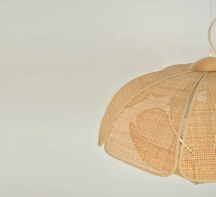 Avec ses formes organiques et son design inspiré des coquillages, cette suspension diffuse une lumière douce et chaleureuse. Idéale pour les grands espaces, elle est parfaite pour créer une ambiance à la fois accueillante et naturelle. Ses pétales en cannage apportent une touche vintage et enveloppent les sources lumineuses comme des perles précieuses, reflétant et diffusant une lumière harmonieuse.