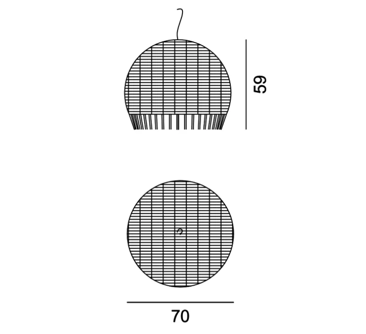 Le diamètre de la suspension est de 100cm et sa hauteur de 59cm. Son câble mesure 2m.