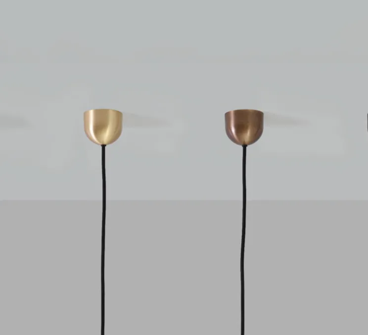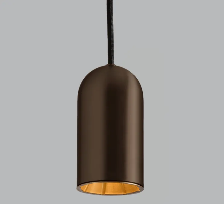 La ligne cylindrique est portée par un câble noir discret et ajustable sur deux mètres, qui disparaît dans le décor. Le bronze, à la fois brut et chaleureux, confère une présence minérale à la pièce. Doma captera les regards sans jamais dominer l’espace. Pensée pour un éclairage directionnel, elle accompagne aussi bien des zones de passage que des scènes décoratives, galeries ou encore salons architecturés en apportant une touche Art Déco assumée.