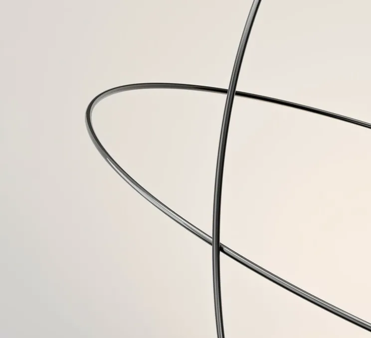 Avec sa forme circulaire et son fini noir brillant, cette suspension ajoute une touche de sophistication à tout intérieur. La structure, suspendue par deux câbles fins et dotée de deux arceaux croisés, crée un jeu de lumière captivant, projetant des ombres dynamiques qui évoluent avec le passage du jour. Le diffuseur en sphère noire mate offre un contraste subtil, tandis que les deux éclairages, orientés vers le sol et le plafond, permettent de jouer avec les ambiances lumineuses. Idéale pour les pièces de haut plafond, cette suspension signée Nika Zupanc habille l’espace avec élégance.