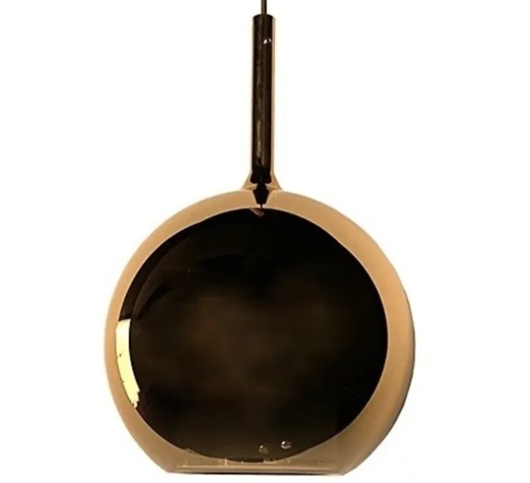 Ici, la Glo Maxi présente la finition miroir rose doré accompagnée de sa rosace noire. D’autres finitions sont également disponibles. Possède un câble de 2 mètres. L’ampoule LED E27 d’une puissance de 20W est fournie. Non dimmable. La suspension mesure 55 cm de diamètre et 80 cm de hauteur.