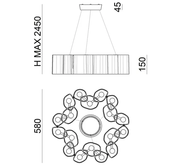 La suspension Honey est une œuvre d’art lumineuse qui marie l’innovation technologique à un design esthétique. Avec son diamètre imposant de Ø58cm et une hauteur de 15cm, cette suspension crée un impact visuel saisissant dans n’importe quel espace.