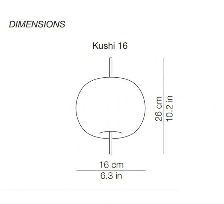 La suspension Kushi 16 a un diamètre de 16cm et une hauteur de 26cm. Son câble mesure 1m80. Elle nécessite une ampoule G9 d’une puissance maximale de 25W non fournie. Dimmable selon ampoule. Eclairage diffus.