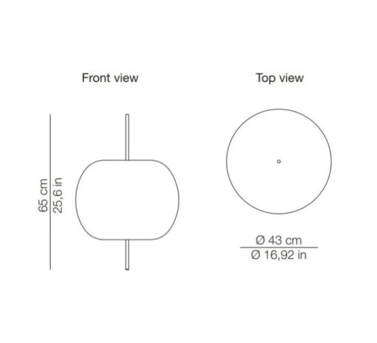 La suspension Kushi a un diamètre de 43cm et une hauteur de 65cm.