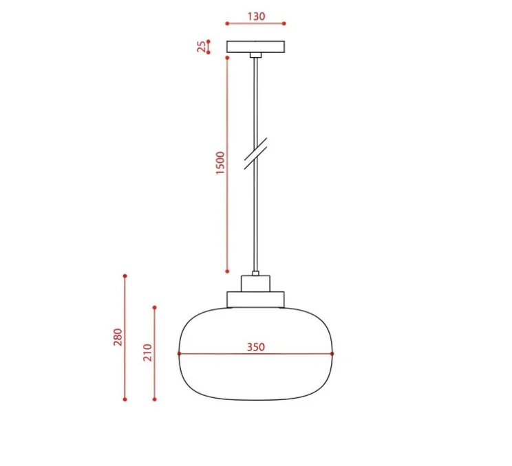 Ce luminaire se compose d’une source LED de 10W. Il est composé d’un abat-jour en verre opalin de 35cm de diamètre et 21 cm de hauteur. Dimmable par coupure de phase.