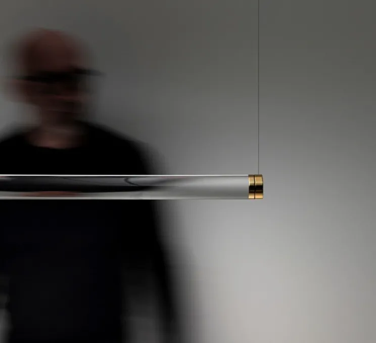 Magia est le nouveau système d’éclairage à suspension modulaire qui s’adapte aux différentes hauteurs des pièces et peut générer une lumière directe et indirecte grâce au module orientable à 360°. Dans ce cas, la lentille n’est pas utilisée pour concentrer, mais pour modifier la vision et la perception de l’objet. L’effet de la lentille convexe permet de dissimuler la partie émettrice de la lumière et produit un très léger effet de suspension et d’inconsistance.