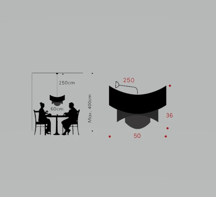 Cette suspension est équipée d’une rosace conique de 12 cm de diamètre et 6 cm de hauteur ainsi que d’un câble de 2,5 mètres pour une installation pratique. Maya nécessite l’ajout de trois ampoules LED E27 de maximum 20 watts (non incluses).