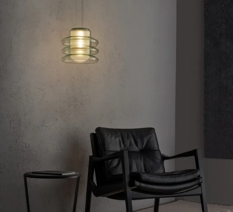 La collection Pace puise son inspiration dans la notion de rythme, de tempo et de répétition. La lumière se diffuse à travers les couches de verre superposées, créant des dégradés subtils et des jeux de reflets. Élégante, empilable et pourtant généreuse dans ses courbes, la suspension Pace 28 apporte une touche graphique et aérienne à une salle à manger, un couloir ou une chambre. Pour un effet visuel raffiné, elle peut aussi être combinée en composition verticale avec d’autres éléments de la gamme.