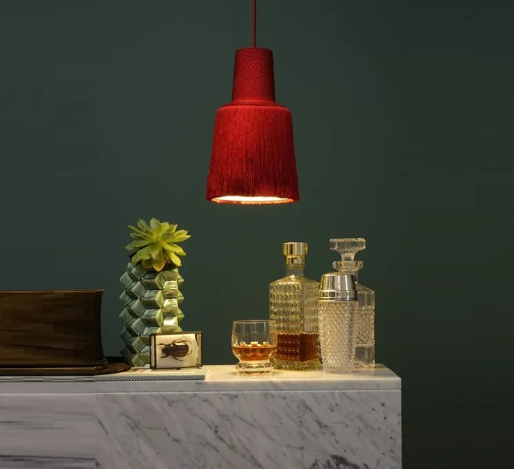 Cette suspension atypique, avec le tissu qui la recouvre, peut s’adapter à toutes les pièces de votre intérieur.