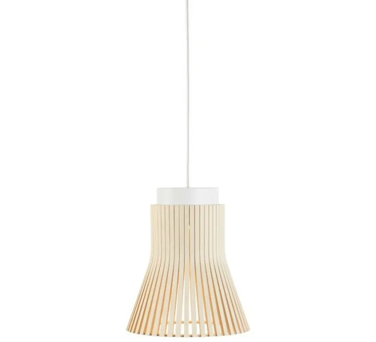 Dans la plus pure tradition scandinave, les suspensions Secto Design sont fabriquées artisanalement en Finlande. Chaque pièce est un véritable défi technique dont la fabrication nécessite un savoir-faire artisanal d’exception. Les lattes de l’abat-jour sont reliées entre elles par des anneaux réalisés en « aircraft plywood », un matériau très résistant à la chaleur utilisé par l’industrie aéronautique.