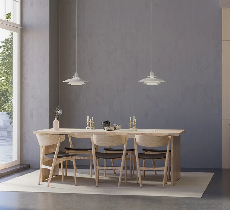 La Primus I offre une silhouette circulaire minimaliste, qui reflète l’élégance scandinave. Avec son diamètre de 43 cm et sa hauteur de 20 cm, elle apporte une lumière diffuse et agréable tout en restant discrète dans son environnement. Elle se marie facilement à d’autres suspensions de la collection pour créer une harmonie lumineuse dans une cuisine ou un espace café.