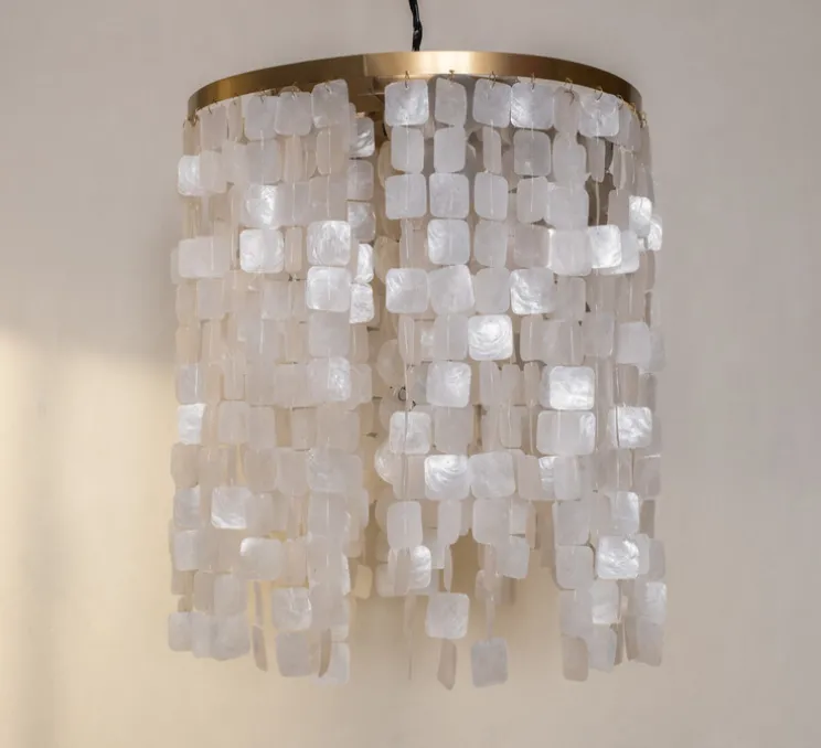 Composée de métal et de coquillage, Rita joue sur la matière et les contrastes naturels. Sa surface diffuse une lumière douce et texturée, idéale au-dessus d’une table de repas, dans un salon ou une entrée. Son design organique et ses nuances minérales s’accordent parfaitement avec des ambiances chaleureuses, aux tons neutres ou boisés.