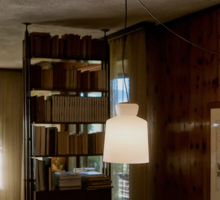 Découvrez la suspension SB Cinquantotto de couleur blanche, une pièce qui incarne la fusion sublime entre le génie créatif de Gino Sarfatti et la vision contemporaine de Santi et Borachia pour la marque italienne Astep.