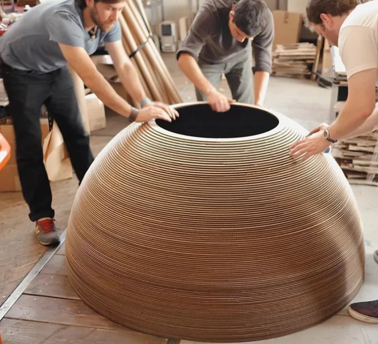 La suspension Dome36 est constituée de fines strates de carton recyclable découpées au laser et assemblées à la main dans les studios à Amsterdam.