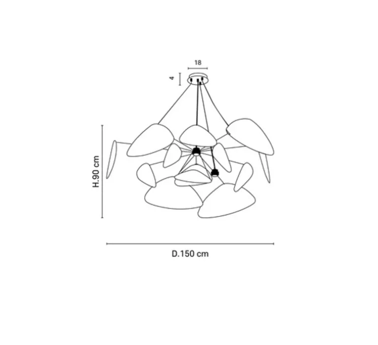 La suspension XXL Screen mesure 150cm de diamètre et 90cm de hauteur. Le câble mesure jusqu’à 160 cm, vous pouvez l’ajuster selon vos envies.