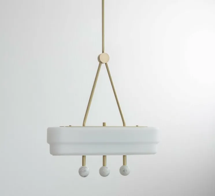Née d’un savoir-faire d’excellence, Spate est principalement faite de laiton, de verre opalin avec du marbre « carrara » : un joli marbre blanc !