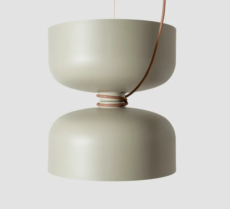 Découvrez la suspension B/B, finition sauge, de la collection Spotlight Volumes, imaginée par Lukas Peet pour la maison canadienne A-N-D.