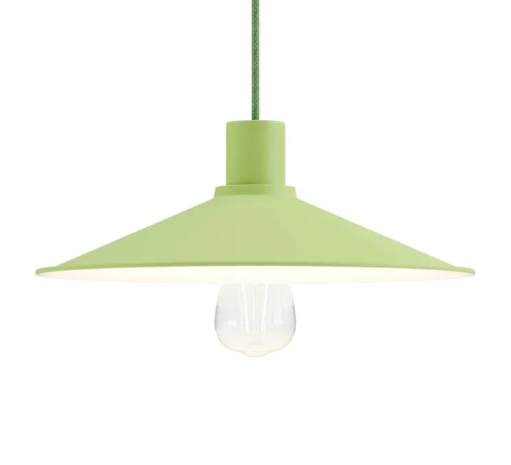 Dotée d’un câble en textile vert de 1,2 m, la Swing Pastel offre un éclairage direct avec un angle fixe de 120°, et elle est compatible avec des ampoules LED E27 d’une puissance maximale de 5W, dimmables ou non dimmables, pour un contrôle optimal de l’ambiance lumineuse. La suspension est livrée prête à installer. Rosace incluse.