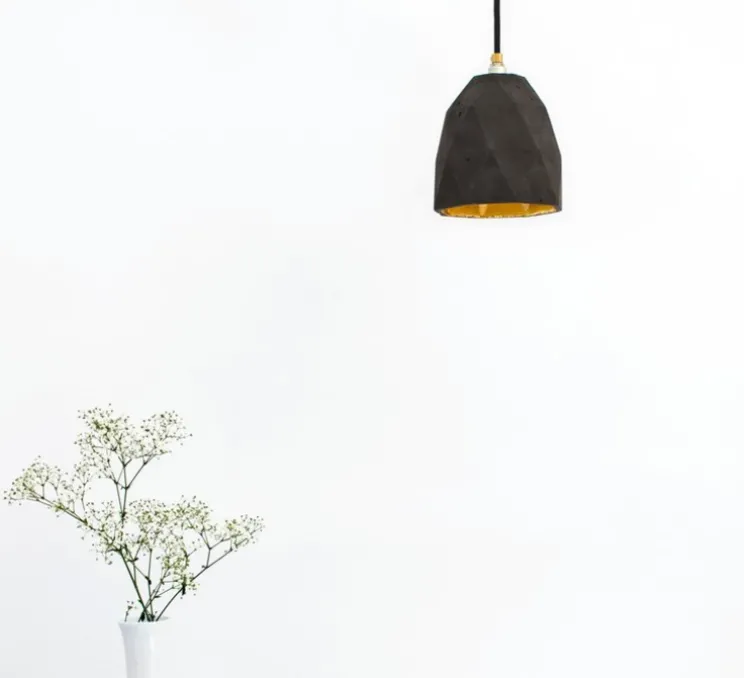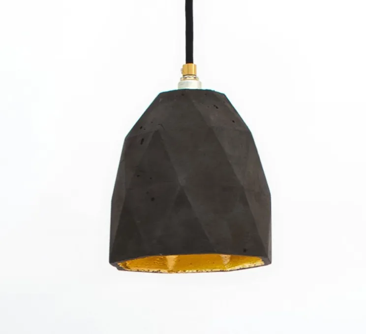Coulée et fabriquée à partir de béton, cette suspension combine une couleur or noble avec le gris contrastant du béton brut.