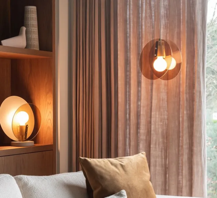 Sa finition ambre diffuse une lumière chaleureuse et crée une atmosphère accueillante. Avec son câble en corde couleur sable de 2,5 m, elle s’installe aussi bien seule qu’en composition de plusieurs pièces alignées au-dessus d’une table ou dans un salon.