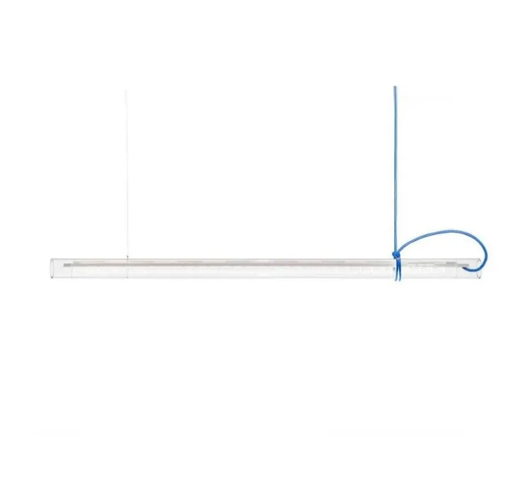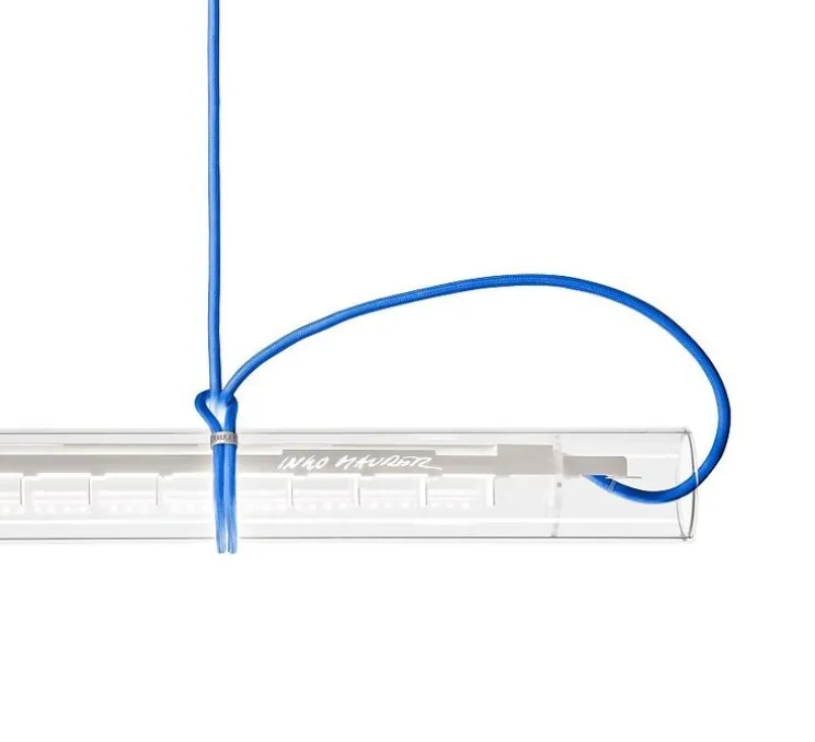Le luminaire Tubular est composé d’un long corps tubulaire en verre, de deux filins et d’un câble électrique. Multifonctionnelle, le tube de Tubular peut être tourné à 360°, pouvant être ainsi utilisé comme downlight, uplight ou wallwasher. La suspension Tubular s’installe aussi bien au-dessus d’un bureau que dans un salon.