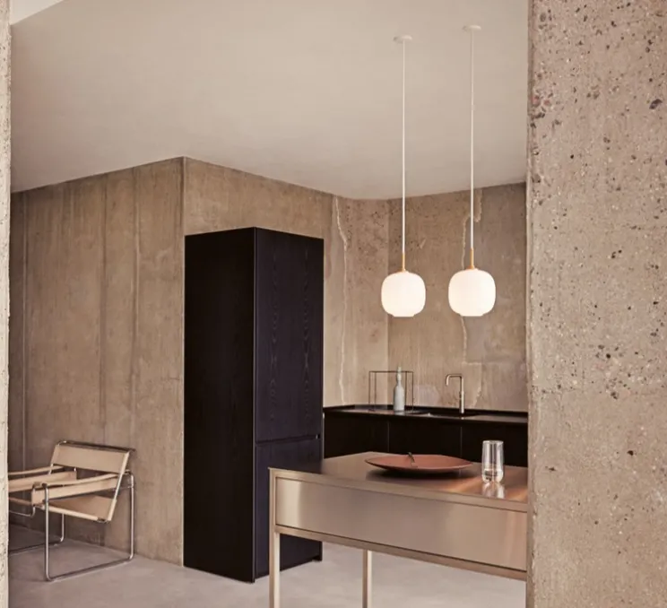 Fabriquée en verre opal brillant soufflé à la bouche, cette pièce emblématique conjugue lignes douces, matériaux nobles et lumière chaleureuse. Sa silhouette sphérique au style vintage trouve naturellement sa place dans des environnements contemporains, en suspension centrale dans une salle à manger, un salon ou un espace d’accueil.